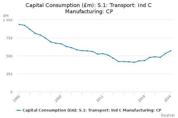 Download this time seriesCapital Consumption (£m): S.1: Transport: Ind C Manufacturing: CP