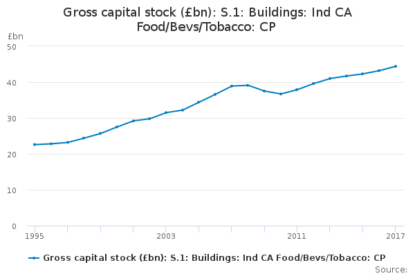 Download this time seriesGross capital stock (£bn): S.1: Buildings: Ind CA Food/Bevs/Tobacco: CP
