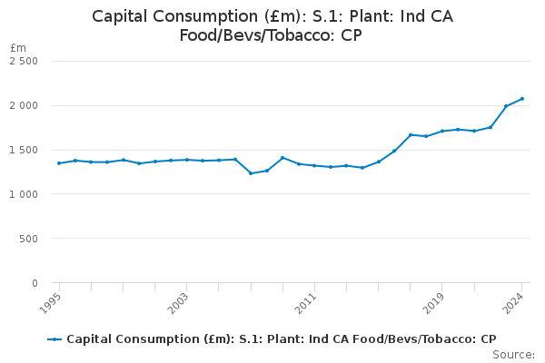 Download this time seriesCapital Consumption (£m): S.1: Plant: Ind CA Food/Bevs/Tobacco: CP