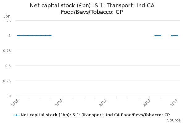 Download this time seriesNet capital stock (£bn): S.1: Transport: Ind CA Food/Bevs/Tobacco: CP