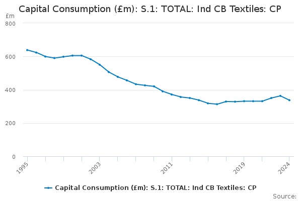 Download this time seriesCapital Consumption (£m): S.1: TOTAL: Ind CB Textiles: CP