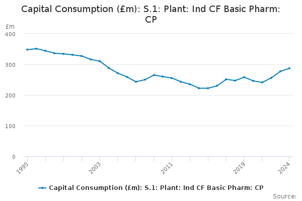 Download this time seriesCapital Consumption (£m): S.1: Plant: Ind CF Basic Pharm: CP