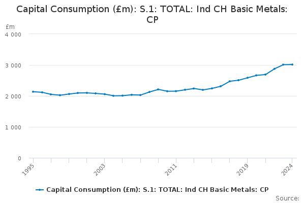 Download this time seriesCapital Consumption (£m): S.1: TOTAL: Ind CH Basic Metals: CP