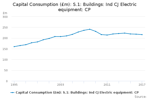 Download this time seriesCapital Consumption (£m): S.1: Buildings: Ind CJ Electric equipment: CP