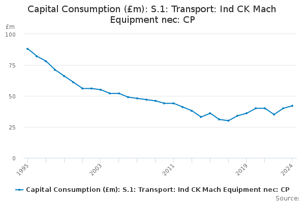 Download this time seriesCapital Consumption (£m): S.1: Transport: Ind CK Mach Equipment nec: CP
