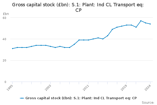 Download this time seriesGross capital stock (£bn): S.1: Plant: Ind CL Transport eq: CP