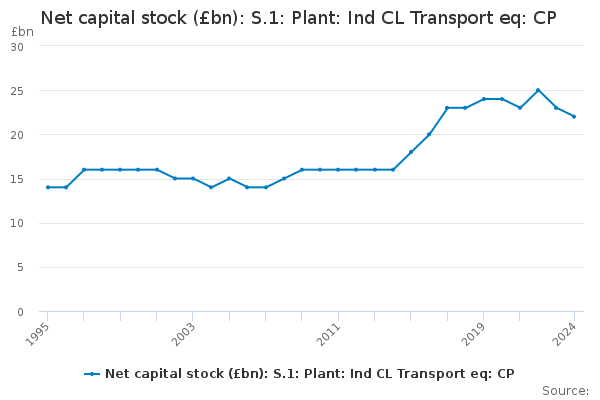 Download this time seriesNet capital stock (£bn): S.1: Plant: Ind CL Transport eq: CP