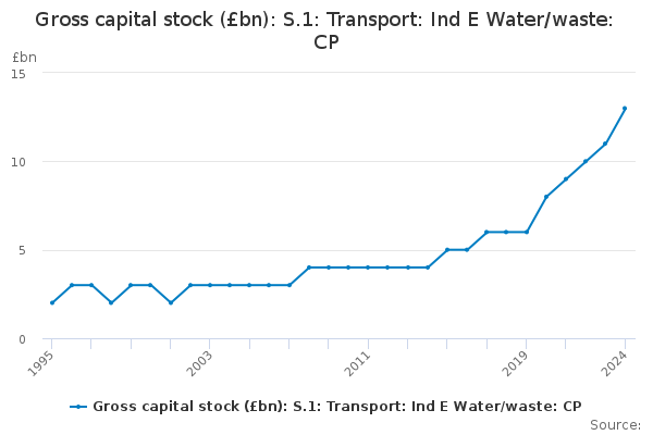Download this time seriesGross capital stock (£bn): S.1: Transport: Ind E Water/waste: CP
