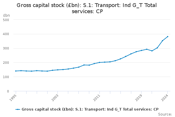 Download this time seriesGross capital stock (£bn): S.1: Transport: Ind G_T Total services: CP