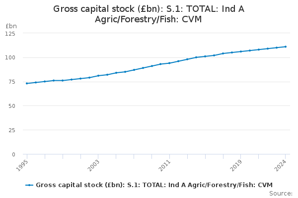Download this time seriesGross capital stock (£bn): S.1: TOTAL: Ind A Agric/Forestry/Fish: CVM