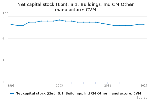 Download this time seriesNet capital stock (£bn): S.1: Buildings: Ind CM Other manufacture: CVM