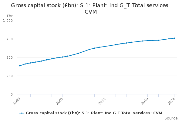 Download this time seriesGross capital stock (£bn): S.1: Plant: Ind G_T Total services: CVM