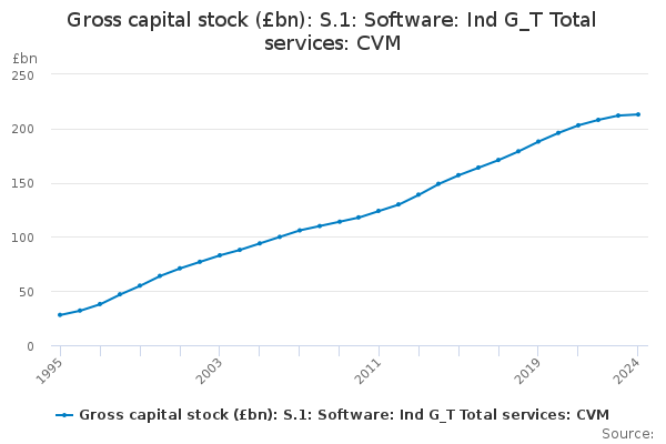 Download this time seriesGross capital stock (£bn): S.1: Software: Ind G_T Total services: CVM