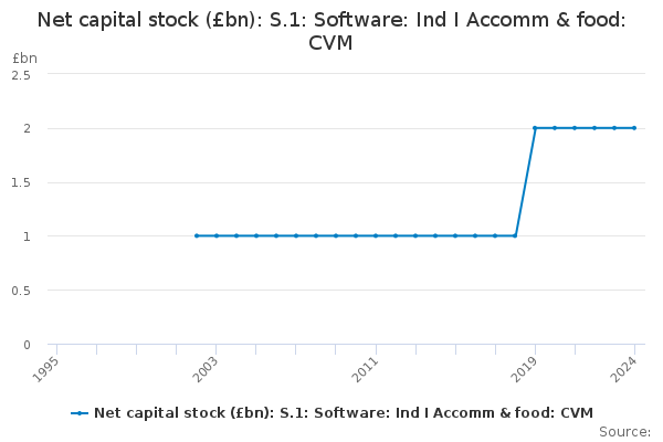 Download this time seriesNet capital stock (£bn): S.1: Software: Ind I Accomm & food: CVM