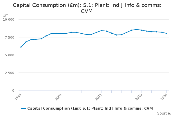 Download this time seriesCapital Consumption (£m): S.1: Plant: Ind J Info & comms: CVM