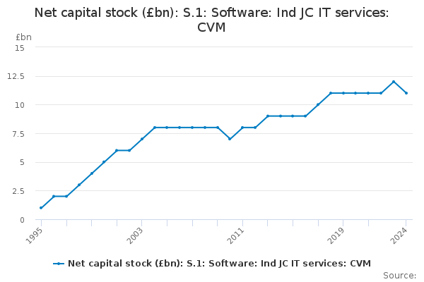 Download this time seriesNet capital stock (£bn): S.1: Software: Ind JC IT services: CVM