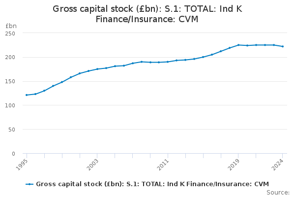 Download this time seriesGross capital stock (£bn): S.1: TOTAL: Ind K Finance/Insurance: CVM