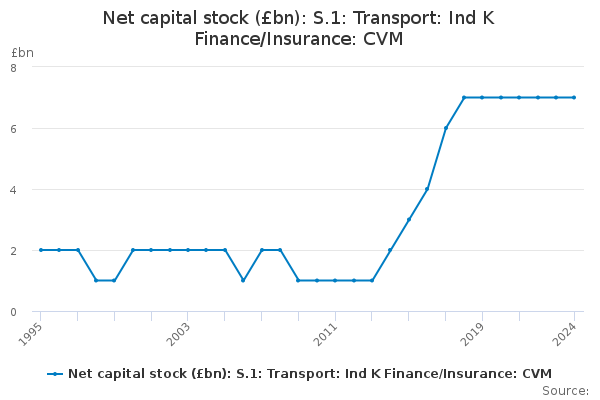Download this time seriesNet capital stock (£bn): S.1: Transport: Ind K Finance/Insurance: CVM