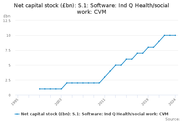 Download this time seriesNet capital stock (£bn): S.1: Software: Ind Q Health/social work: CVM
