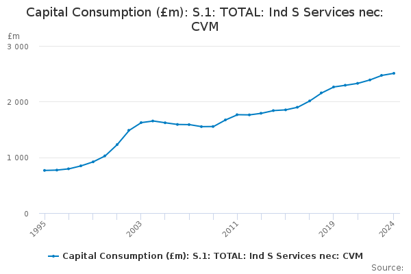 Download this time seriesCapital Consumption (£m): S.1: TOTAL: Ind S Services nec: CVM