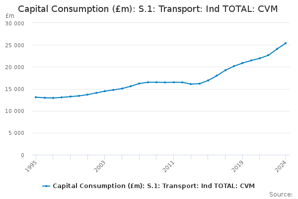 Download this time seriesCapital Consumption (£m): S.1: Transport: Ind TOTAL: CVM