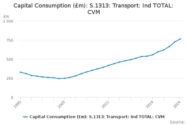 Download this time seriesCapital Consumption (£m): S.1313: Transport: Ind TOTAL: CVM