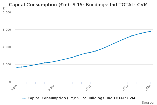 Download this time seriesCapital Consumption (£m): S.15: Buildings: Ind TOTAL: CVM