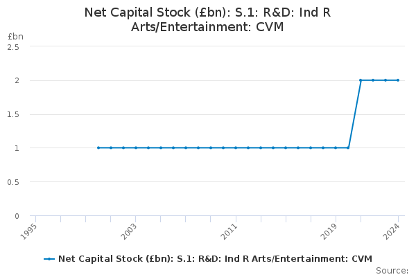 Download this time seriesNet Capital Stock (£bn): S.1: R&D: Ind R Arts/Entertainment: CVM