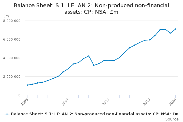 Download this time seriesBalance Sheet: S.1: LE: AN.2: Non-produced non-financial assets: CP: NSA: £m