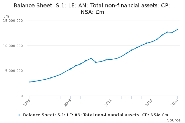 Download this time seriesBalance Sheet: S.1: LE: AN: Total non-financial assets: CP: NSA: £m