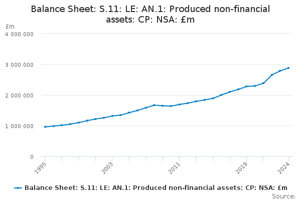 Download this time seriesBalance Sheet: S.11: LE: AN.1: Produced non-financial assets: CP: NSA: £m