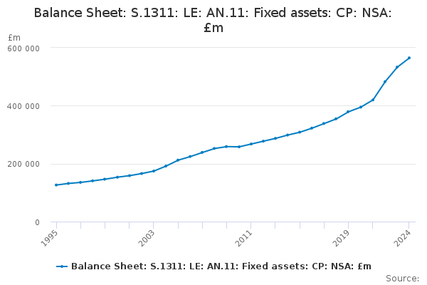 Download this time seriesBalance Sheet: S.1311: LE: AN.11: Fixed assets: CP: NSA: £m