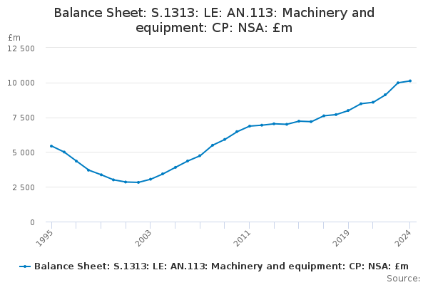 Download this time seriesBalance Sheet: S.1313: LE: AN.113: Machinery and equipment: CP: NSA: £m