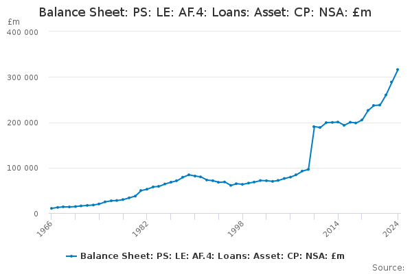 Download this time seriesBalance Sheet: PS: LE: AF.4: Loans: Asset: CP: NSA: £m