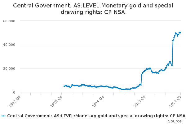 Download this time seriesCentral Government: AS:LEVEL:Monetary gold and special drawing rights: CP NSA
