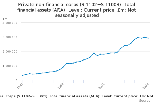 Download this time seriesPrivate non-financial corps (S.1102+S.11003): Total financial assets (AF.A): Level: Current price: £m: Not seasonally adjusted