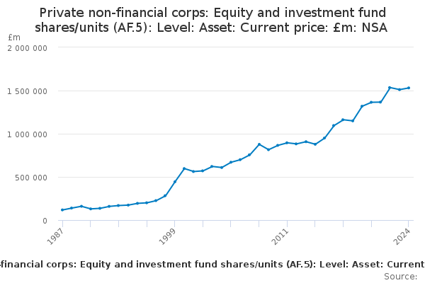 Download this time seriesPrivate non-financial corps: Equity and investment fund shares/units (AF.5): Level: Asset: Current price: £m: NSA