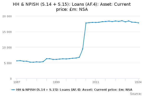 Download this time seriesHH & NPISH (S.14 + S.15): Loans (AF.4): Asset: Current price: £m: NSA