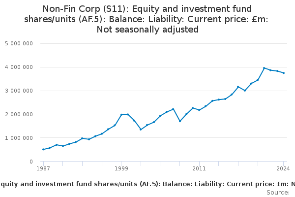 Download this time seriesNon-Fin Corp (S11): Equity and investment fund shares/units (AF.5): Balance: Liability: Current price: £m: Not seasonally adjusted
