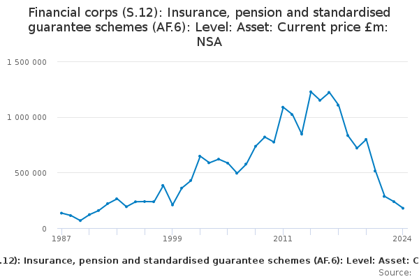 Download this time seriesFinancial corps (S.12): Insurance, pension and standardised guarantee schemes (AF.6): Level: Asset: Current price £m: NSA