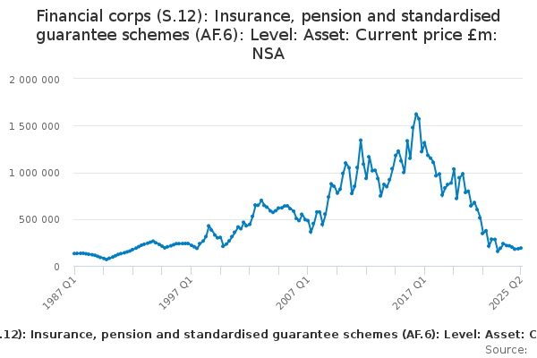 Download this time seriesFinancial corps (S.12): Insurance, pension and standardised guarantee schemes (AF.6): Level: Asset: Current price £m: NSA