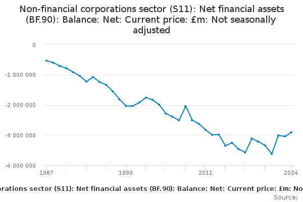 Download this time seriesNon-financial corporations sector (S11): Net financial assets (BF.90): Balance: Net: Current price: £m: Not seasonally adjusted