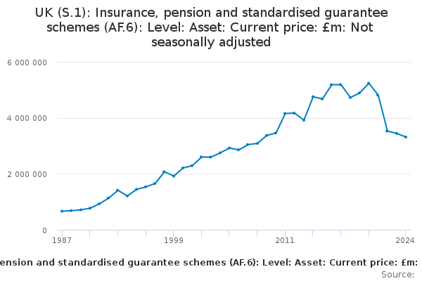 Download this time seriesUK (S.1): Insurance, pension and standardised guarantee schemes (AF.6): Level: Asset: Current price: £m: Not seasonally adjusted