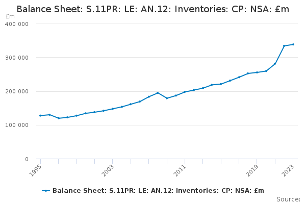 Download this time seriesBalance Sheet: S.11PR: LE: AN.12: Inventories: CP: NSA: £m