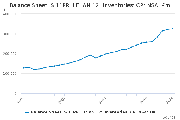 Download this time seriesBalance Sheet: S.11PR: LE: AN.12: Inventories: CP: NSA: £m
