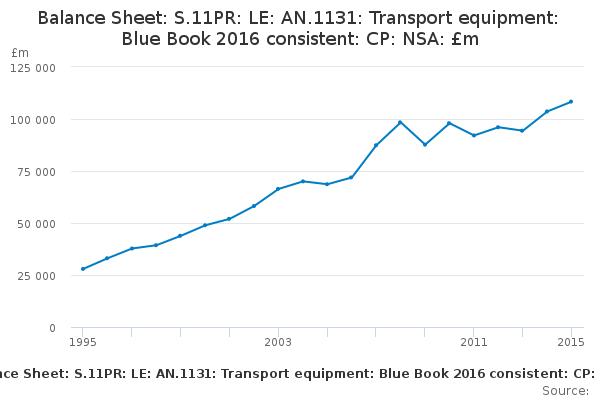 Download this time seriesBalance Sheet: S.11PR: LE: AN.1131: Transport equipment: Blue Book 2016 consistent: CP: NSA: £m