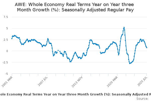 Download this time seriesAWE: Whole Economy Real Terms Year on Year three Month Growth (%): Seasonally Adjusted Regular Pay