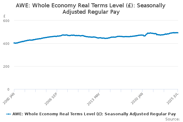 Download this time seriesAWE: Whole Economy Real Terms Level (£): Seasonally Adjusted Regular Pay