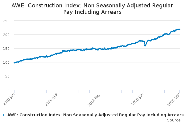 Download this time seriesAWE: Construction Index: Non Seasonally Adjusted Regular Pay Including Arrears