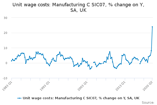 Download this time seriesUnit wage costs: Manufacturing C SIC07, % change on Y, SA, UK